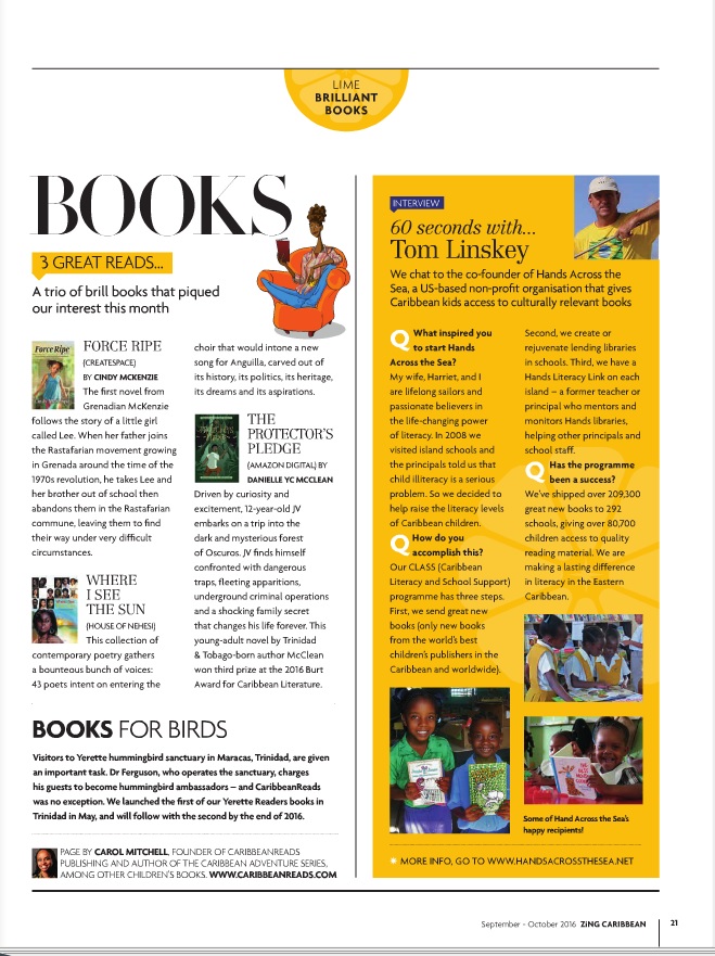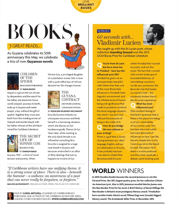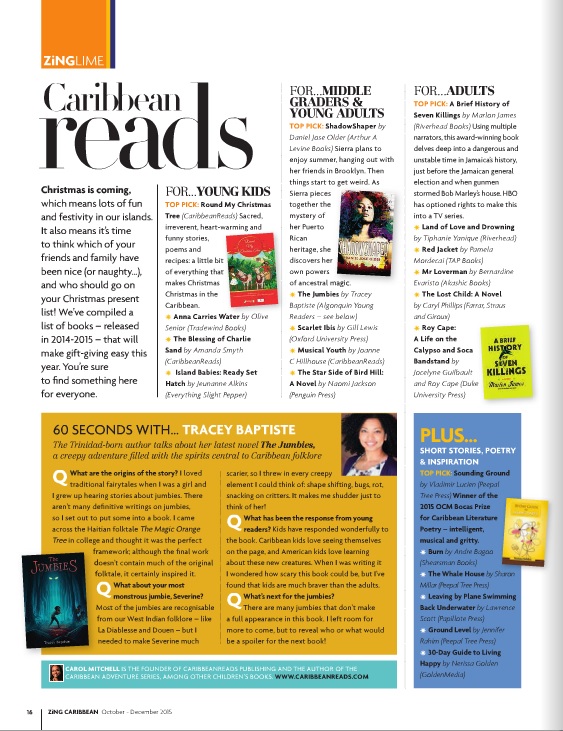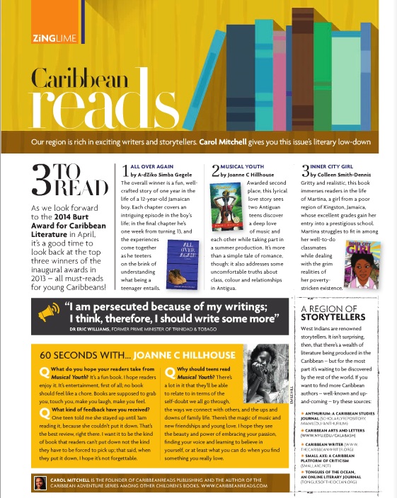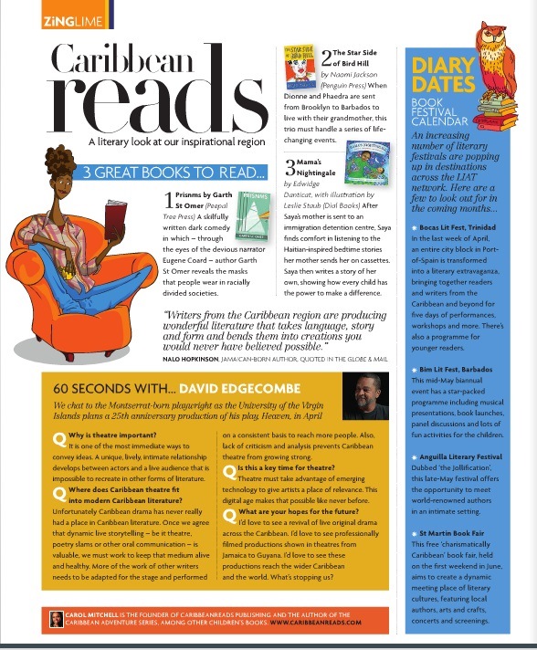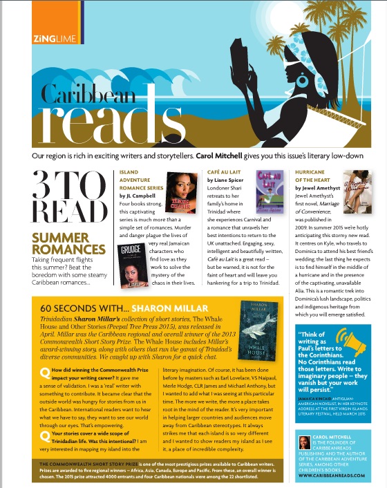 Since April 2015, CaribbeanReads has contributed a Caribbean Lit page to the ZING Magazine that is distributed on LIAT planes. Our contribution to this magazine ended when LIAT suspended operations in early 2020 due to COVID. The page now appears in Cacique magazine. Find Cacique issues here.